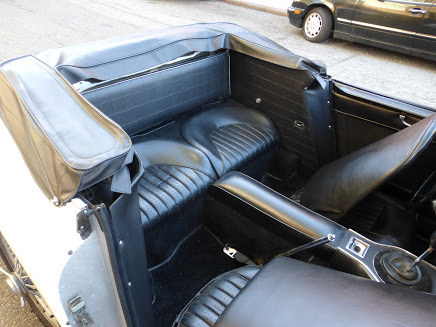 Notre Austin-Healey 3000 BJ8 MKII Phase1 a fait l’objet d’une restauration avec notamment une belle peinture « old english white » avec un bel intérieur noir.